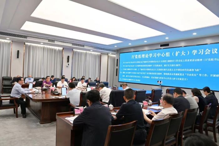 4月27日下午,省水利厅党组书记刘琳主持召开厅党组理论学习中心组(扩大)学习会,学习习近平总书记在主题教育工作会议和在广东考察时的重要讲话精神、习近平总书记关于治水的重要论述精神,围绕推进水资源配置及“节水优先”等工作开展研讨交流。