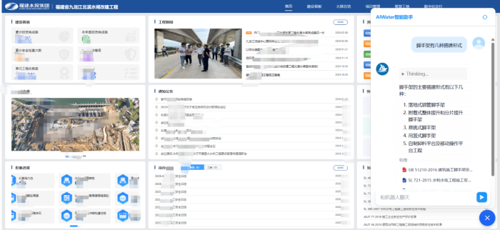 九龙江北溪水闸改建工程的线上平台率先引入了DeepSeek-R1通用大模型的自然语言处理能力,持续整合水利工程建设中的各类标准规范、技术文档及成功案例等知识资源,构建出一个即时、精准的知识引擎。当技术人员遇到水资源优化配置、水工结构安全评估等问题时,可通过自然语言提问,系统迅速提供相关知识解答和解决方案建议,显著提升技术人员解决问题的效率,全面推动水利工程建设技术水平的提升。