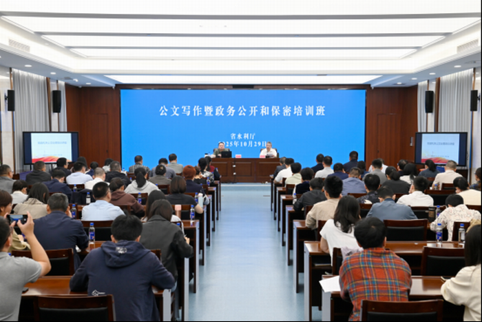 10月29日,省水利厅举办公文写作暨政务公开和保密培训班,厅党组成员、副厅长吴深生作开班动员。本次培训旨在深入贯彻落实中央和省委关于整治形式主义为基层减负部署要求,提升水利系统干部履职能力。