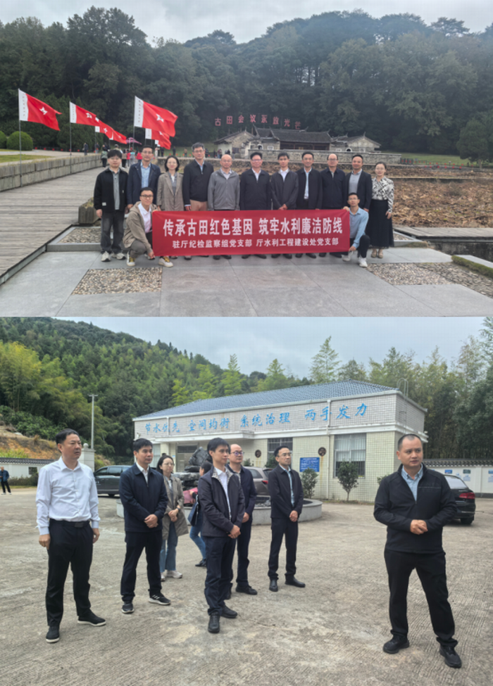 为深入学习贯彻习近平总书记关于持续深化整治群众身边不正之风和腐败问题的重要要求,进一步引导党员干部坚定理想信念、严守纪律底线、提升工作实效,10月28日,省水利厅驻厅纪检监察组党支部与厅建设处党支部共赴龙岩上杭,联合开展“传承古田红色基因,筑牢水利廉洁防线”主题党日活动。厅党组成员、副厅长、一级巡视员余德贵与驻厅纪检监察组组长林学坚以普通党员身份参加活动。