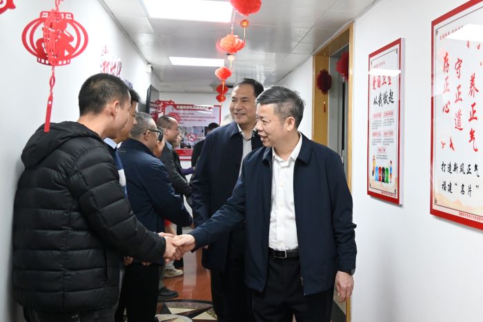 2月24日,春节后首个工作日,省水利厅党组书记陈水树、厅长叶敏带领厅领导班子成员到厅机关各处室、厅属各单位走访拜年,向全体水利系统干部职工送上新春祝福。