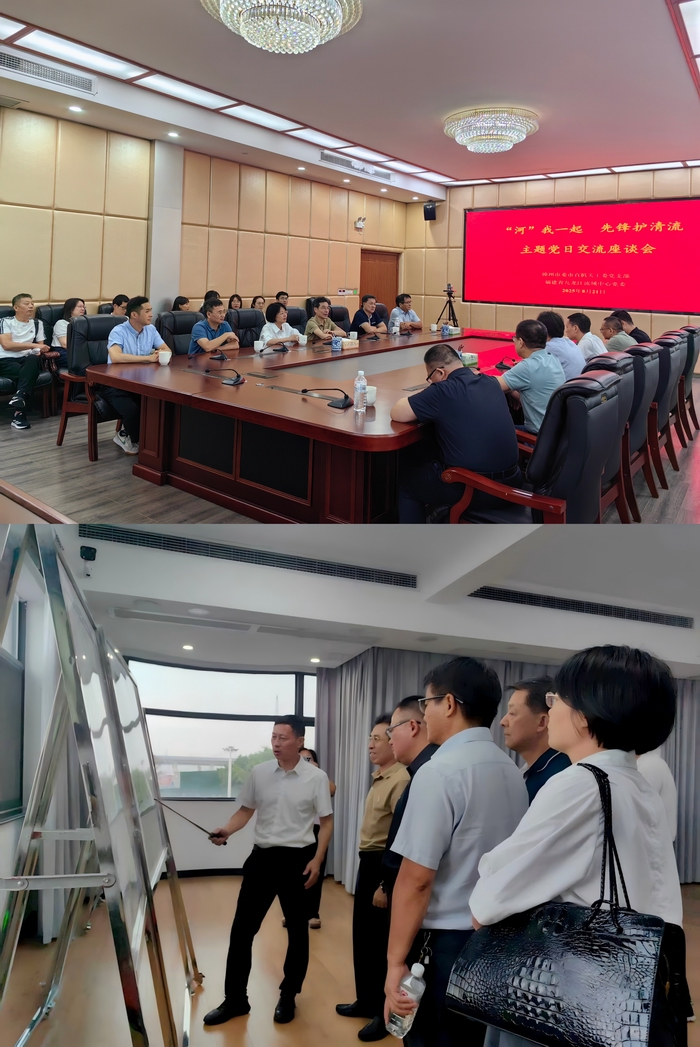 全体党员沿九龙江北溪顺流而下,开展巡河志愿活动,以实际行动践行“绿水青山就是金山银山”理念,展现党员先锋护河的使命担当。在北溪水闸,共同参观数字孪生九龙江北溪示范项目,通过现代化信息手段直观了解流域管理、生态调度和智慧水利建设成果。随后,双方围绕习近平生态文明思想开展专题学习与党建座谈交流,畅谈学习体会,交流党建经验。
