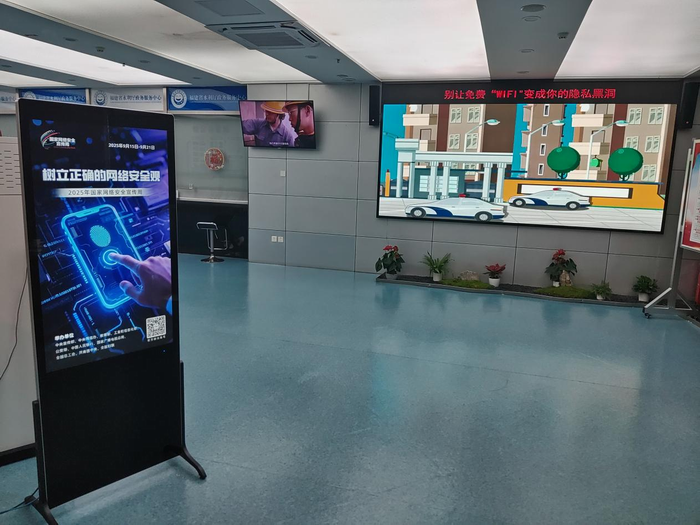 送一份安全提醒。宣传周期间,通过水利厅官网、宣传大屏、微信、短信等多种渠道,发送网络安全宣传信息1000余条;在厅办公楼大厅设置“2025年国家网络安全宣传周”主题宣传展板、大屏幕循环播放国家网络安全宣传片及典型网络诈骗宣传防范知识,提升干部职工对网上虚假信息的鉴别识别能力,营造健康文明的网络环境,共同维护国家网络安全。