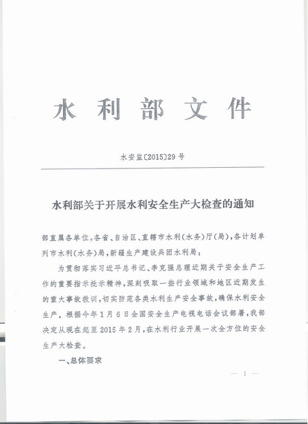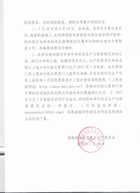 福建省水利厅安委会转发水利部关于开展水利安全生产大检查的通知