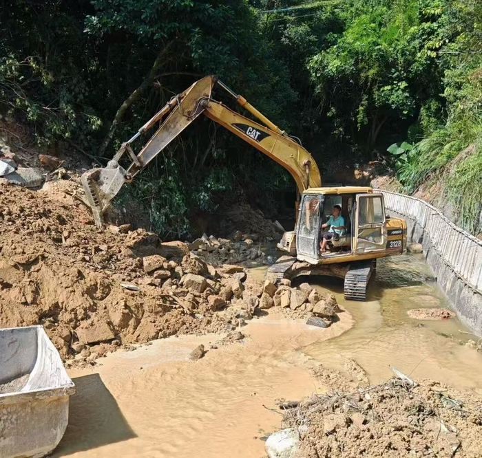 码头镇宫占村引水渠道砌筑加固工程施工中