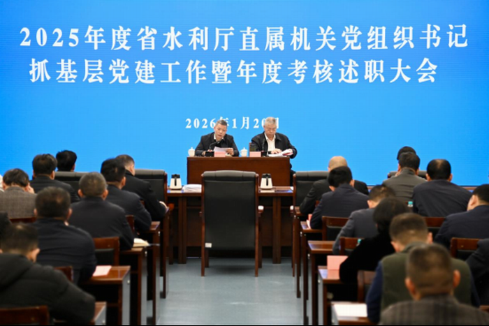 会上,厅直属机关党组织书记和机关各处室负责人分别作现场述职,厅二级巡视员、总工程师作书面述职。陈水树听取述职并逐一点评,充分肯定了2025年全省水利工作取得的优异成绩。