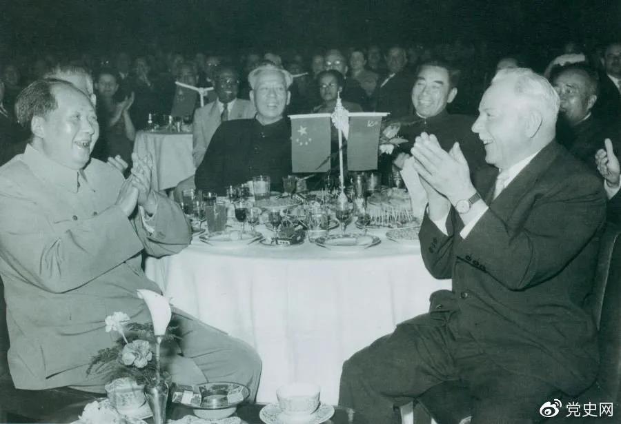 1957年4月16日,毛泽东和苏联最高苏维埃主席团主席伏罗希洛夫在欢迎酒会上。
