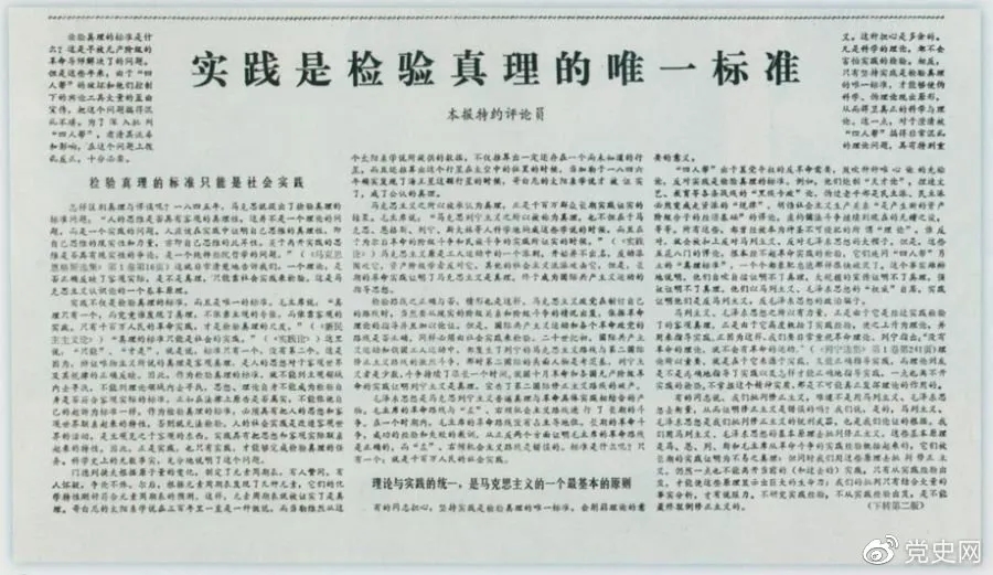 图为《光明日报》以特约评论员的名义公开发表《实践是检验真理的唯一标准》一文。