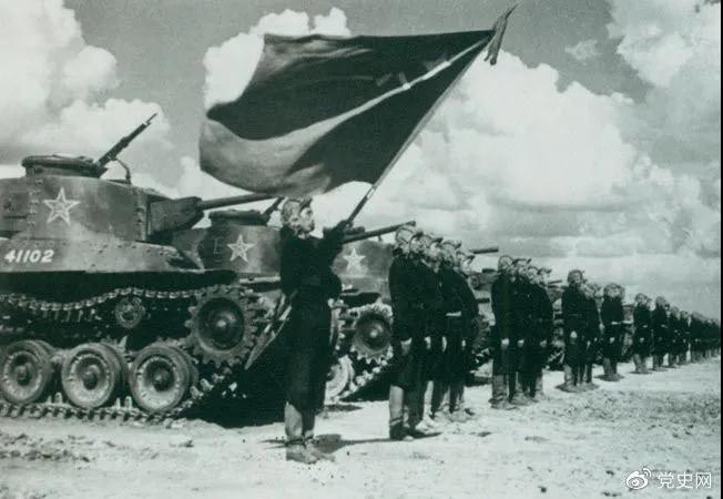 1950年9月,中国人民解放军装甲兵领导机构在北京成立。图为坦克部队阵容。